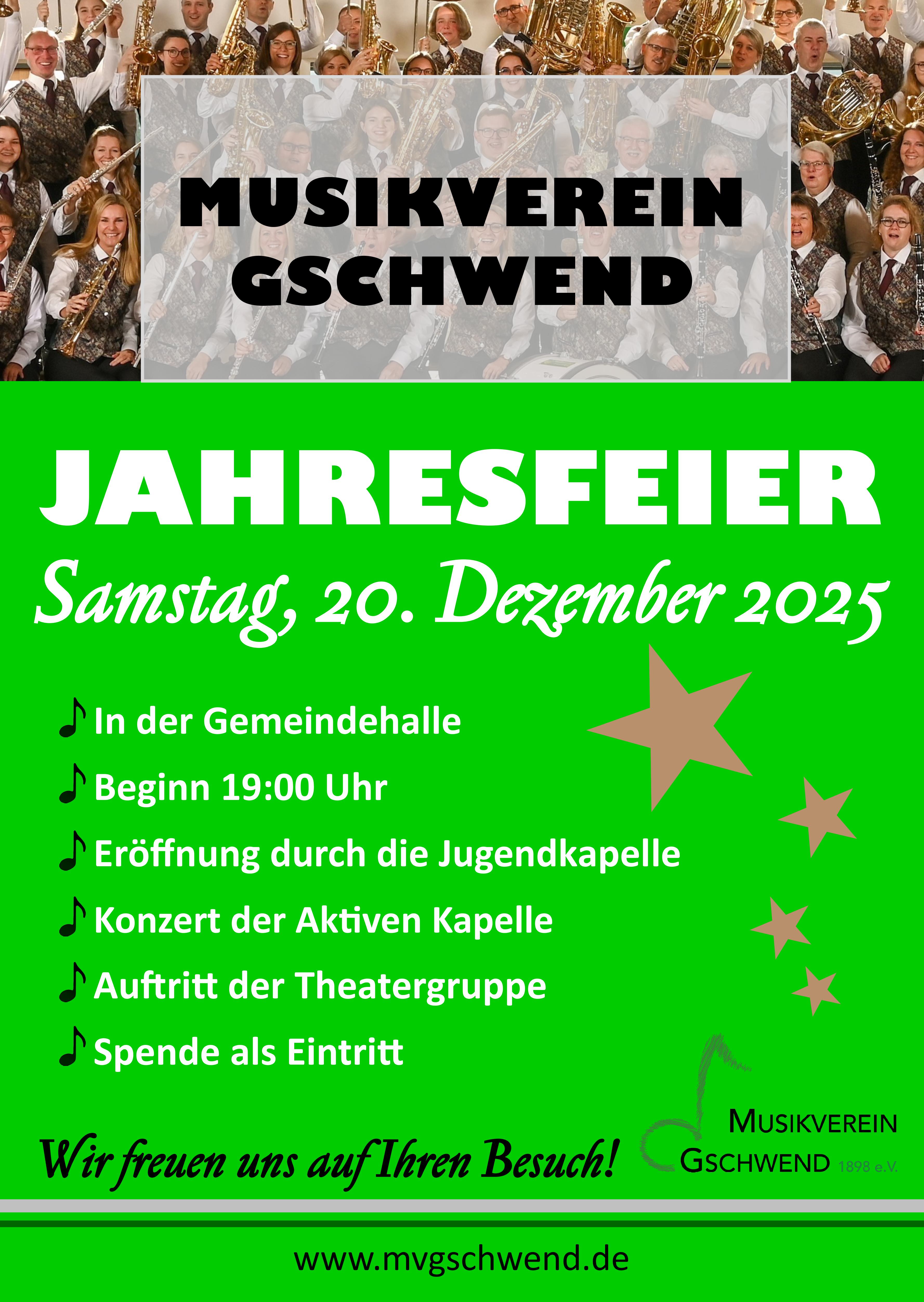 | Samstag | 20.12.2025 | Jahresfeier in der Gemeindehalle | 19:00 Uhr |